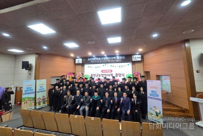 시민행정신문 강갑수 기자 | 옥천군은 19일 농업기술센터 농업인교육관에서 옥천군 농업의 미래를 이끌어갈 농업전문인력을 양성하는 2025학년도 옥천군농업인대학 졸업식을 성황리에 개최하고, 총 43명의 전문 농업인을 배출했다.