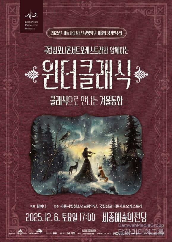 시민행정신문 기자 | 세종시립청소년교향악단이 내달 6일 오후 5시 세종예술의전당에서 제6회 정기연주회 ‘윈터클래식-클래식으로 만나는 겨울동화’공연을 선보인다.