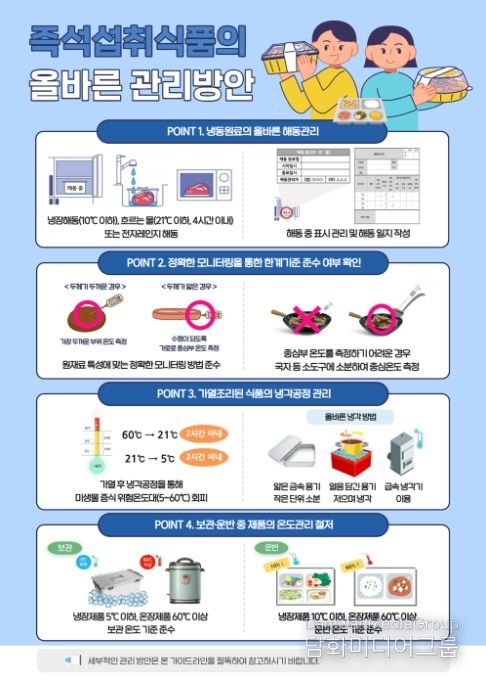 (즉석섭취식품) 급식이나 도시락 등은 소비자가 가열하지 않고 바로 섭취하는 제품으로 식중독이 발생하지 않도록 각 공정별 온도 관리를 철저히 해야 한다.