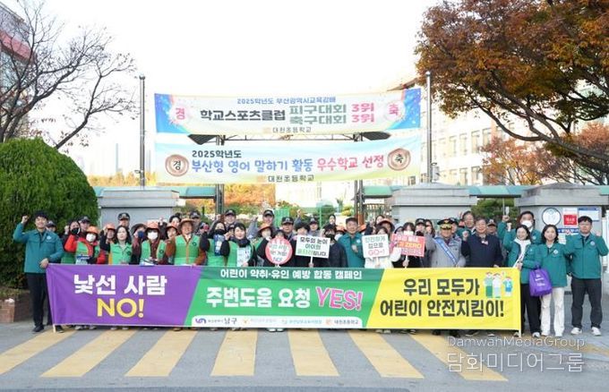 시민행정신문 강갑수 기자 | 부산 남구는 지난 11월 20일, 오전 8시 대연동 대천초등학교 일원에서 '어린이 약취‧유인 예방 합동 캠페인'을 실시했다고 밝혔다.