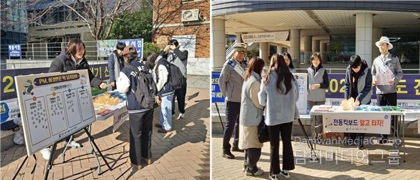 현장에서는 천마니 캐릭터와 함께하는 스티커 붙이기 참여 이벤트, 꽝 없는 추억의 뽑기를 통해 PM 안전 수칙 리플렛과 홍보물품 배부, 무면허 운행 금지, 보도 주행 금지, 2인 탑승 금지 등 주요 안전 수칙 보드 전시 등 학생 참여형 홍보가 펼쳐졌다.