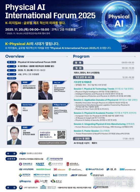 첫 번째 주제 발표로 카이스트(KAIST)의 장영재 교수가 ‘AI전환기, 융합인재 확보 방안’에 대해 소개하고, 이어 한국폴리텍대학의 이혜정 교수가 ‘X-AI와 기술인재 양성 전략’을 발표한다. 주제 발표 후에는 ‘피지컬AI 패러다임에서 폴리텍대학의 도전과 기회’에 대해 현장 토론이 진행된다. 이번 포럼을 통해 산·관·학이 유기적으로 연결되어 피지컬 인공지능 인재 육성 전략을 구체화하는 중요한 장이 될 것이다.