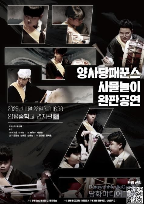 시민행정신문 강갑수 기자 | 양평군은 교육협력센터 공모사업인 ‘양평형 마을공동 교육과정’의 사물놀이 프로그램을 운영 중인 양평중학교 사물놀이 동아리 ‘양사당패 꾼스’가 오는 22일 오후 4시 30분, 양평중학교 명지관에서 기념 공연을 개최한다고 밝혔다. 이번 공연은 학생들이 마을과 함께 쌓아온 학습 성과를 지역 주민들과 공유하기 위해 마련된 자리다.