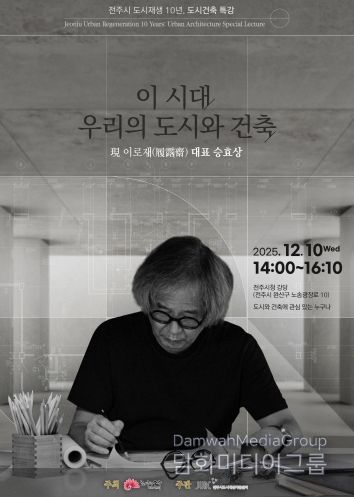 특히 오는 12월 10일 오후 3시, 전주시청 강당에서 열리는 마지막 강연에는 대한민국 대표 건축가인 승효상 이로재(履露齋) 대표가 ‘이 시대 우리의 도시와 건축’을 주제로 전주시민과 만날 예정이다.