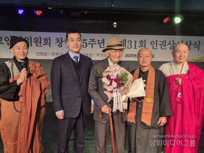 시민행정신문 장규호 기자 | 불교인권위원회(공동대표 진관·도관)가 창립 35주년을 맞아 11월 20일 한국창극원 창덕궁소극장에서 기념식과 함께 제31회 불교인권상 시상식을 개최했다. 위원회는 앞서 11월 3일 충북 영동 대약사사 여래종 총무원에서 열린 불교인권상선정위원회(위원장 명안 스님)를 통해, 미전향 장기수 안학섭(96) 선생을 제31회 수상자로, 해병대 채 상병 순직사건의 진실을 밝힌 박정훈 해병대 대령을 2025년 인권공로상 특별 수상자로 선정했다.