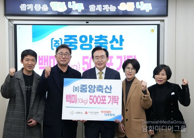 시민행정신문 강갑수 기자 | 전라남도 나주시가 지역기업 ㈜중앙축산으로부터 사회복지시설과 취약계층을 위한 백미 500포 기탁을 받아 겨울철 생활안정을 위한 나눔 확산에 나섰다.