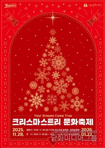 시민행정신문 강갑수 기자 | 연수구가 주최하고 (재)연수문화재단이 주관하는 ‘2025 크리스마스트리 문화축제’가 내년 1월 22일까지 구청 1층 송죽원과 한마음광장, 연수구 제2청사에서 열린다.