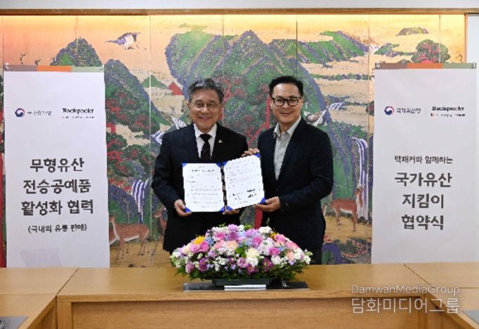 시민행정신문 이존영 기자 | 국가유산청은 온라인 상거래(커머스) 기업 ㈜백패커와 11월 21일 오후 2시 국립고궁박물관 회의실(서울 종로구)에서 무형유산 전승 활동지원 등을 위한 국가유산지킴이 협약을 체결했다.