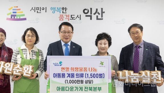 비영리 공익단체인 '아름다운가게전북본부'는 24일 익산시에 겨울 아동의류 1,500벌을 기탁했다.