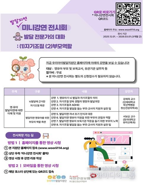 이번 미니강연 전시회는 온라인 영상 강연 형식으로 열리며, 영상은 1편(자기조절)과 2편(부모역할)으로 나눠서 게시된다.