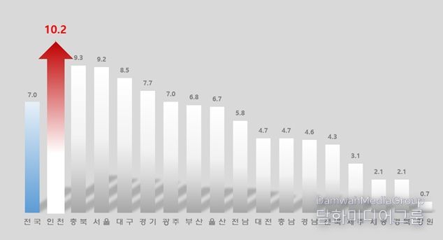 통계청이 발표한 ‘2025년 9월 인구동향’에 따르면, 인천시는 올해 1월부터 9월까지 출생아 수가 전년 같은 기간보다 10.2% 늘어나 전국 17개 시·도 가운데 가장 높은 증가율을 보였다. 반면, 충북(9.3%)과 서울(9.2%)이 그 뒤를 이었으며 전국 평균 증가율은 7.0%에 그쳤다.