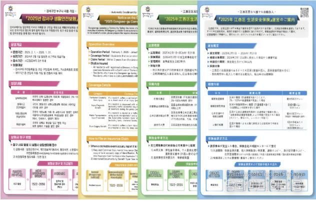 시민행정신문 강갑수 기자 | 서울 강서구는 ‘생활안전보험’ 안내문을 한국어, 영어, 중국어, 일본어 4개 국어로 제작했다고 밝혔다.