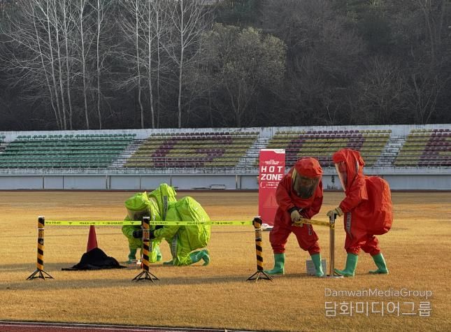 시민행정신문 기자 | 충북 괴산군보건소는 지난 26일 오후 괴산종합운동장에서 2025년 생물테러 대비·대응 대규모 모의훈련을 실시했다.