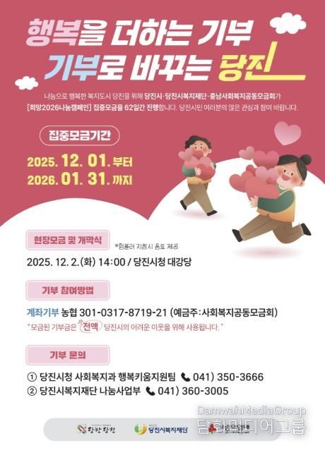 시는 오는 12월 2일 오후 2시 당진청 대강당에서 ‘희망 2026 나눔 캠페인 이웃돕기 성금모금 개막식’을 개최하고 현장 모금 행사를 진행할 예정이다.