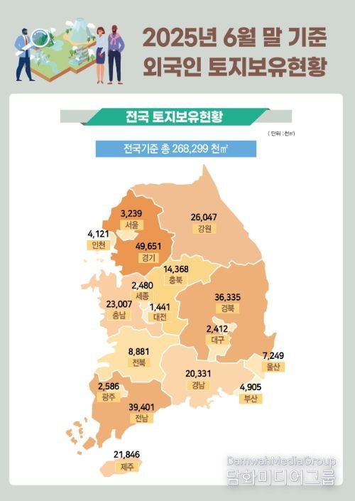 시민행정신문 강갑수 기자 | 국토교통부는 2025년 6월말 기준 외국인 토지·주택 보유통계를 공표했다.