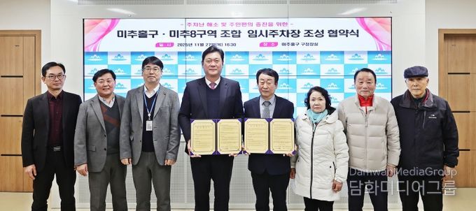 이번 협약에 따라 미추8구역 조합은 사회공헌사업의 일환으로, 초등학교 건립이 예정된 부지에 면적 4,523㎡, 총 125면 규모의 임시주차장을 조성해 내달 1일부터 지역 주민에게 무료로 개방할 계획이다.