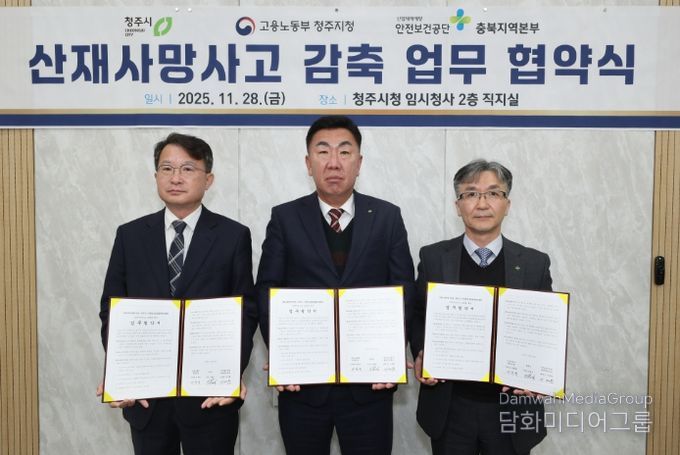 시민행정신문 강갑수 기자 | 청주시와 고용노동부 청주지청, 안전보건공단 충북지역본부는 28일 청주시청에서 ‘산재 사망사고 감축을 위한 업무협약’을 체결했다.