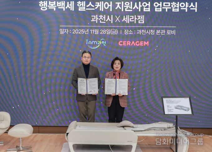 시민행정신문 강갑수 기자 | 과천시는 28일 시청 본관 1층에서 헬스케어 전문기업 ㈜세라젬과 ‘행복백세 헬스케어 지원사업’ 업무협약을 체결하고, 시민들이 일상 속에서 쉽고 편리하게 건강을 관리할 수 있는 환경 조성에 나선다고 밝혔다.