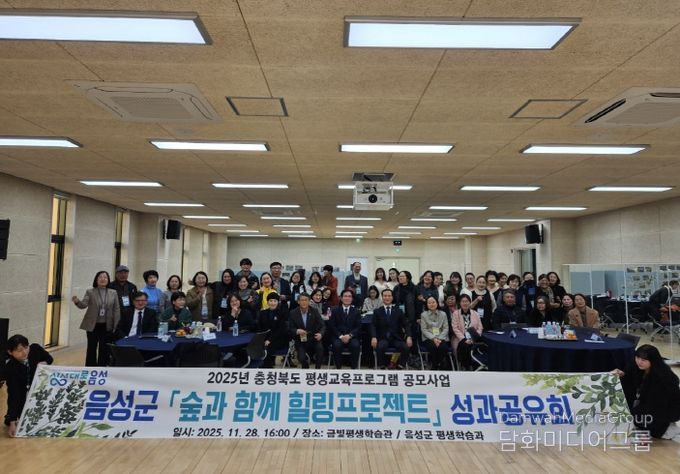 시민행정신문 강갑수 기자 | 음성군은 28일 금빛평생학습관에서 2025년 충청북도 평생교육 프로그램 공모사업 ‘숲과 함께 힐링 프로젝트’의 성과공유회를 개최했다고 밝혔다.