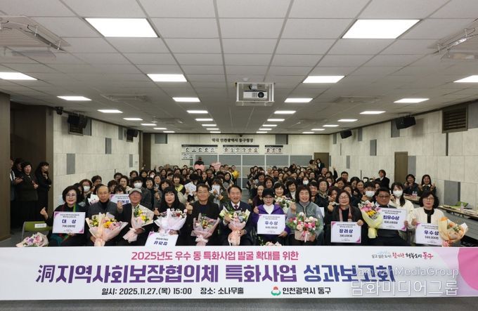 시민행정신문 강갑수 기자 | 인천 동구는 지난 27일 구청 소나무홀에서‘2025년 洞지역사회보장협의체 특화사업 성과보고회’를 개최하고 우수 사업에 대한 시상을 진행했다고 밝혔다.