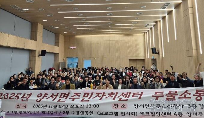 시민행정신문 기자 | 양서면 주민자치위원회는 지난 11월 27일 양서면사무소 대강당에서 ‘2025년 양서면주민자치센터 두물소통한마당’을 성황리에 개최했다.