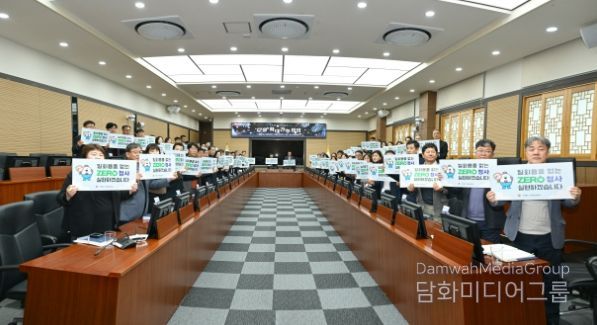 시민행정신문 김학영 기자 | 거제시는 12월 1일 거제시청 중회의실에서 열린 확대간부회의 직후, 거제시장을 비롯한 간부 공무원 63명이 함께한 가운데 ‘1회용품 제로화 청사 선언’을 진행했다.