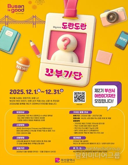원영일 시 대변인은 “부산 곳곳을 누비며 직접 취재하는 경험은 어린이들에게 큰 성취감과 자부심을 줄 것이다”라며, “이번에 모집하는 '제2기 부산시 어린이기자단'을 통해 더 많은 어린이가 부산을 배우고 기록하며 성장할 것으로 기대한다”라고 전했다.