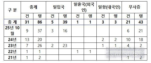 특히, 이들은 낚시객으로 위장하고, 해상날씨 전용앱을 사용하여 밀입국 일정을 치밀하게 준비했으며 목적지 도착전 GPS 전원을 차단하여 감시망을 회피하는 등 밀입국은 갈수록 고도화・지능화되고 있는 실정이다.