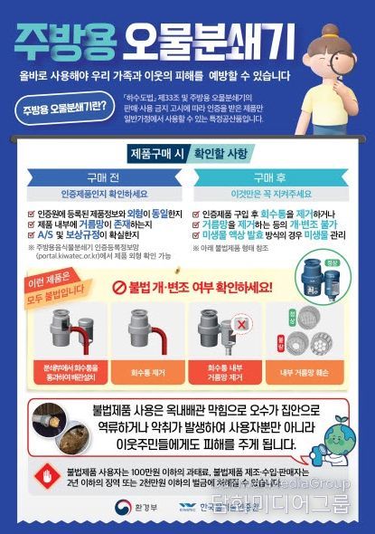 군 관계자는 “불법 오물분쇄기 사용은 개인뿐 아니라 지역 하수도 환경 전체에 피해를 줄 수 있는 만큼, 반드시 인증된 제품을 사용하고 올바른 음식물 처리 방법을 지켜달라”고 당부했다.