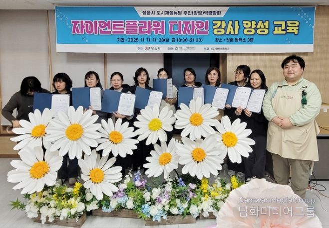 정읍시와 정읍시지역활력센터는 지난 11월 28일 ‘자이언트 플라워(대형 꽃) 디자인 강사 양성과정’ 수료식을 개최하며, 도시재생과 문화예술을 접목할 실무형 인재 육성을 마무리했다.