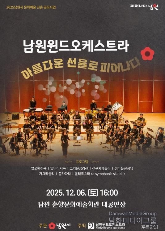 시민행정신문 강갑수 기자 | 남원지역을 대표하는 시민 중심 관악 연주단체인 남원윈드오케스트라가 오는 12월 6일 오후 4시, 춘향문화예술회관 대공연장에서 제8회 정기연주회를 개최한다.