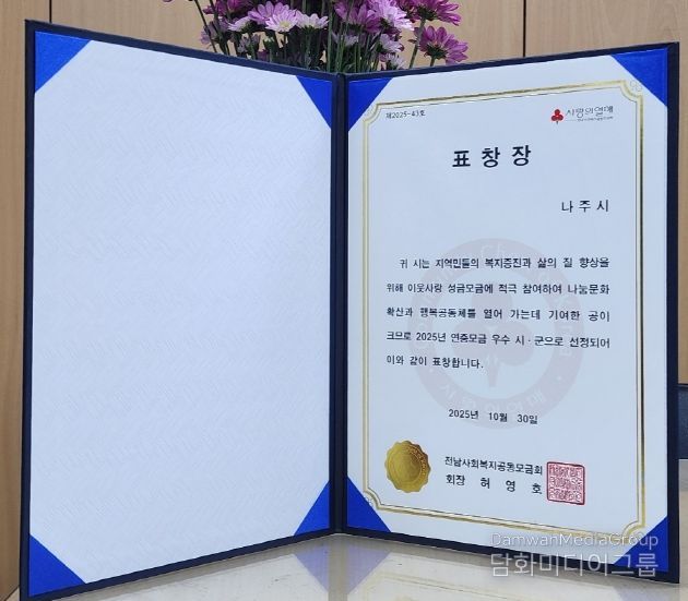 나주시는 ‘희망2025나눔캠페인’을 포함한 연중 모금 실적에서 높은 평가를 받아 2025년 연중 모금 우수 시로 선정됐다고 3일 밝혔다.