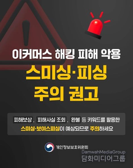 피해보상, 피해사실 조회, 환불 등 키워드를 활용한 스미싱·보이스피싱이 예상되므로 주의하세요.