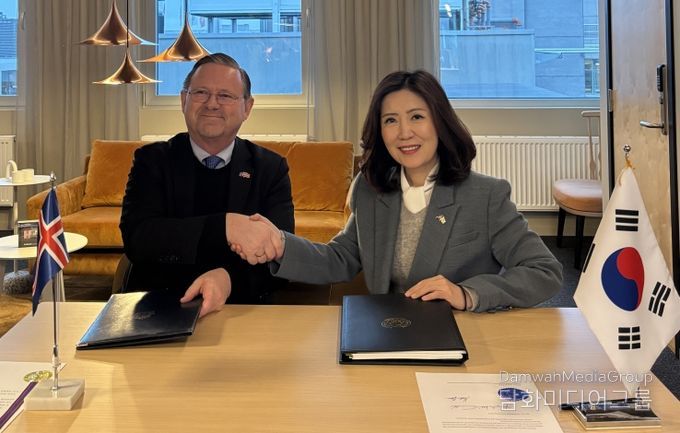 시민행정신문 이존영 기자 | 서민정 주노르웨이대사(아이슬란드 겸임)는 허그니 크리스티안손(Högni Kristjánsson) 주노르웨이아이슬란드대사와 2025년12월 3일 10:00(현지시간) 노르웨이 오슬로에서 '대한민국 정부와 아이슬란드 정부 간의 각자의 영역 간 및 그 이원의 항공업무를 위한 협정'에 정식 서명했다.