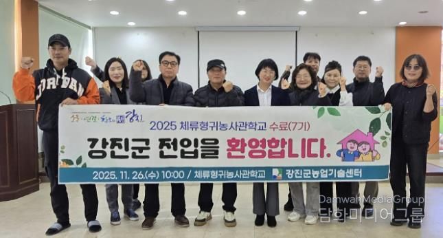 시민행정신문 강갑수 기자 | 강진군은 지난달 26일 체류형귀농사관학교 7기 교육생 수료식을 열고, 9개월간의 체류·교육 과정을 성공적으로 마친 교육생들이 강진에서의 새로운 정착 단계에 들어섰다고 4일 밝혔다.