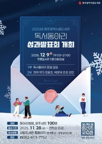 시민행정신문 강갑수 기자 | 광주광역시립도서관은 오는 9일 무등도서관 대회의실에서 ‘2025년 시립도서관 독서동아리 성과발표회’를 개최한다.