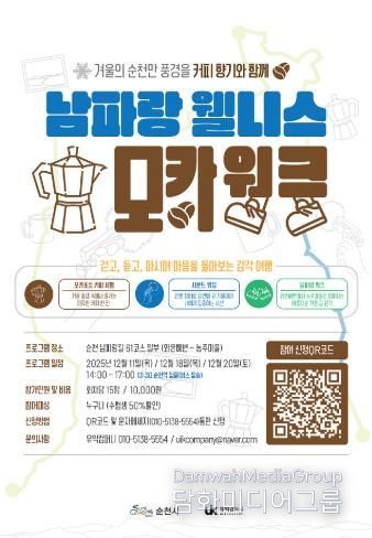 시민행정신문 강갑수 기자 | 순천시는 겨울철 남파랑길 61코스에서 걷기와 감성 체험을 결합한 '남파랑 웰니스 모카 워크' 프로그램을 오는 11일부터 20일까지 3회 운영한다고 밝혔다.
