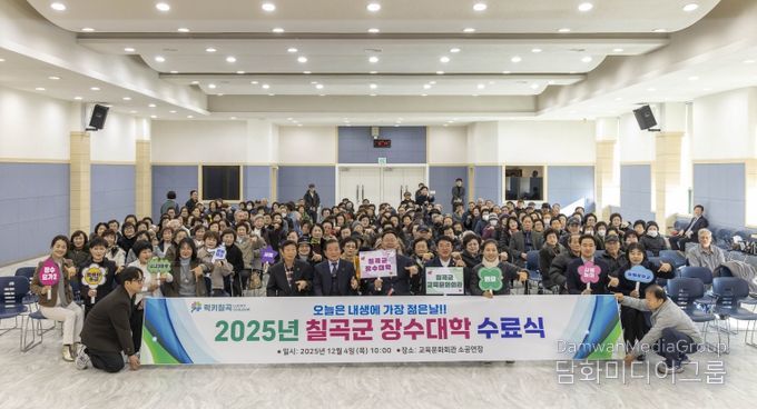 시민행정신문 강갑수 기자 | ‘2025년 칠곡군 장수대학 수료식’이 12월 4일 오전10시 칠곡군 교육문화회관에서 성황리에 개최됐다. 이번 수료식에는 칠곡군 장수대학 수강생 200여 명이 참석해 1년동안 진행한 배움의 여정을 마무리했으며, 칠곡군수를 비롯한 지역 주요 내빈들도 함께해 축하의 의미를 더했다.