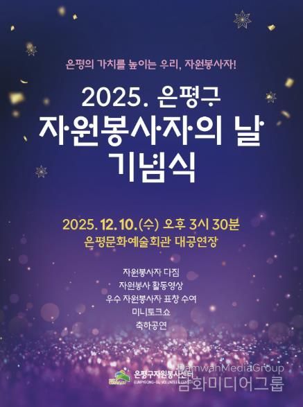 시민행정신문 이존영 기자 | 서울 은평구는 오는 10일 은평문화예술회관 대공연장에서 ‘2025 자원봉사자의 날 기념식’을 개최한다고 밝혔다.