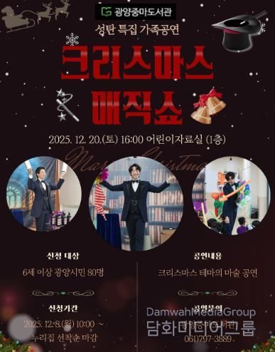 김현숙 도서관과장은 “아이들이 이번 공연을 통해 새로운 상상과 창의의 세계를 경험하고 마술의 원리를 탐구하는 재미를 느끼길 기대한다”며 “도서관을 찾은 가족 모두가 함께 웃고 공감하며 따뜻한 성탄의 추억을 만들어 가길 바란다”고 말했다.