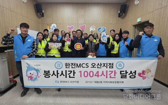 시민행정신문 강갑수 기자 | 오산시 대원2동 지역사회보장협의체는 지난 4일 한전MCS 오산지점과 함께 봉사 누적 1004시간 달성 기념행사를 개최하고, 그동안 지역 곳곳에서 꾸준히 나눔을 실천해 온 직원들의 노고를 격려하는 뜻깊은 시간을 가졌다. 이번 성과는 단기간의 활동이 아닌 지속적인 민·관 협력과 꾸준한 연계로 이뤄낸 결실로, 지역사회에서도 큰 의미를 지닌다.