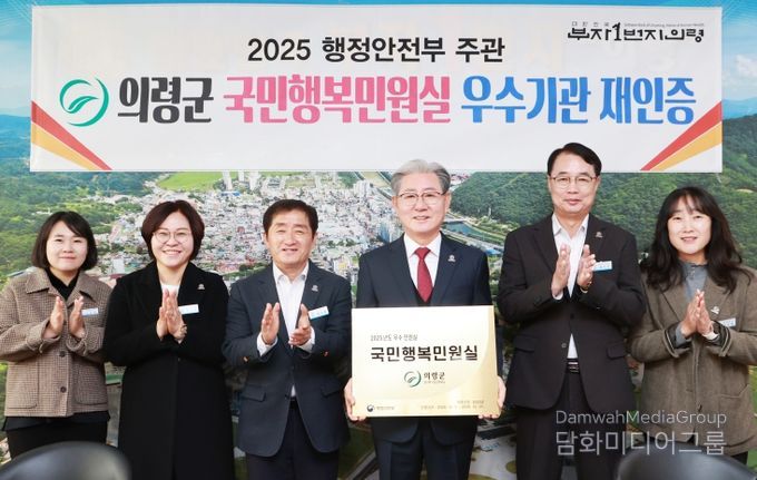 시민행정신문 강갑수 기자 | 의령군이 행정안전부가 주관하는 ‘국민행복민원실’ 재인증 평가에서 우수기관으로 선정됐다. 인증 기간은 2025년 12월 1일부터 2028년 12월 31일까지 3년간이다.