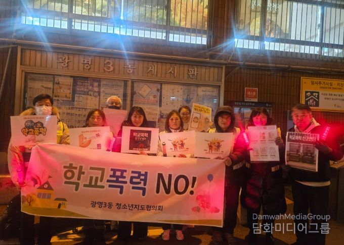 시민행정신문 강갑수 기자 | 광명시 광명3동 청소년지도협의회는 지난 4일 관내 청소년의 건강한 성장환경 조성을 위해 광명초등학교 인근에서 학교폭력 예방 캠페인을 실시했다.