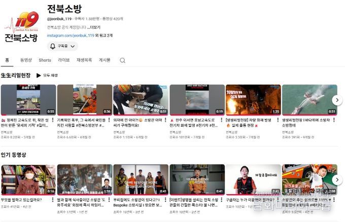 이오숙 전북특별자치도소방본부장은 “두 채널의 성장은 온라인에서 안전을 배우고 실천하려는 흐름이 커졌다는 뜻”이라며 “반응이 큰 콘텐츠를 더 정밀하게 발전시키고 필요한 안전정보를 제때 정확하게 전달해 온라인 소통이 생활 속 안전 실천으로 이어지도록 하겠다”고 말했다.