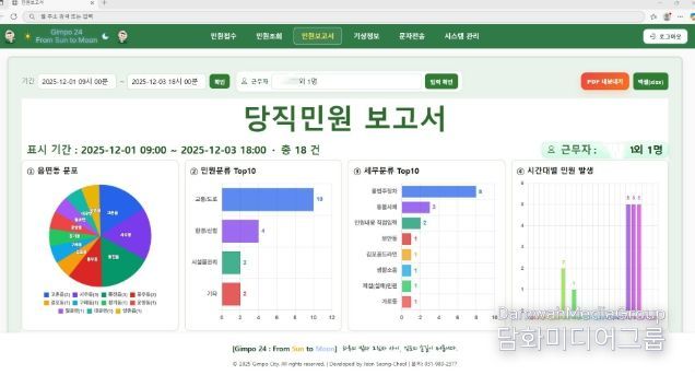 이 시스템은 김포시 정보통신과 전성철 주무관이 생성형 AI 기술을 적극 활용해 웹서버 구축부터 데이터베이스 아키텍처 설계, 기능 개발, 정보보안 기술 적용, UI‧UX 디자인까지 전 과정을 단독 수행하며 개발한 공공분야 자체개발 당직민원처리 시스템의 선도적 사례다.