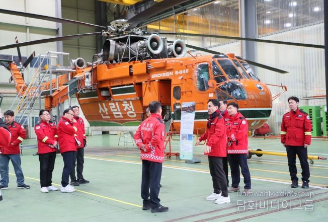 김진태 도지사는 산림항공기 운영현황, 정비체계, 격납고 등 주요 시설을 살펴보며 대응 체계를 면밀히 점검했고, 내년도 산불대응 정책과 추진 계획에 대한 계획을 청취했다.
