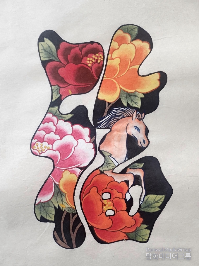 그것은 단순한 그림이 아니라, 2026년 한 해가 힘 있게 열릴 것이라는 상징적 메시지이기도 하다. 붉고 풍성한 모란꽃은 복의 기운이 이미 가득 차 있음을 말해준다. 또 다른 작품에서는 서로 다른 색의 모란이 어우러져 다복多福과 화합의 의미를 더한다.