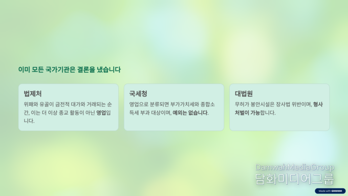이는 더 이상 종교 내부의 분쟁이 아니다. 이것은 탈세이며, 무허가 영업이며, 고령자를 노린 기망 사기다. 그럼에도 피해가 계속되는 이유는 단 하나 국가가 아직 집행하지 않았기 때문이다.