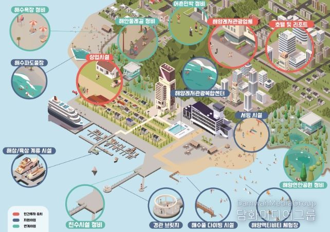 올해 새롭게 추진하는 복합해양레저관광도시 조성사업은 지역의 고유 매력을 활용하고, 민간투자와 연계하여 놀거리(레저), 볼거리(관광), 쉴거리(휴양) 등 해양레저관광 기능을 집적해 대규모 해양관광도시를 조성하는 사업이다.