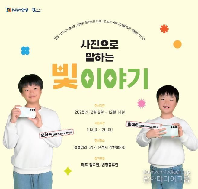 시민행정신문 강갑수 기자 | 안성천 우리동네 작은미술관 결갤러리는 12월 9일부터 12월 14일까지 두 어린이 사진작가 엄서준, 엄예준의 특별한 전시 ‘사진으로 말하는 빛 이야기’를 개최한다.